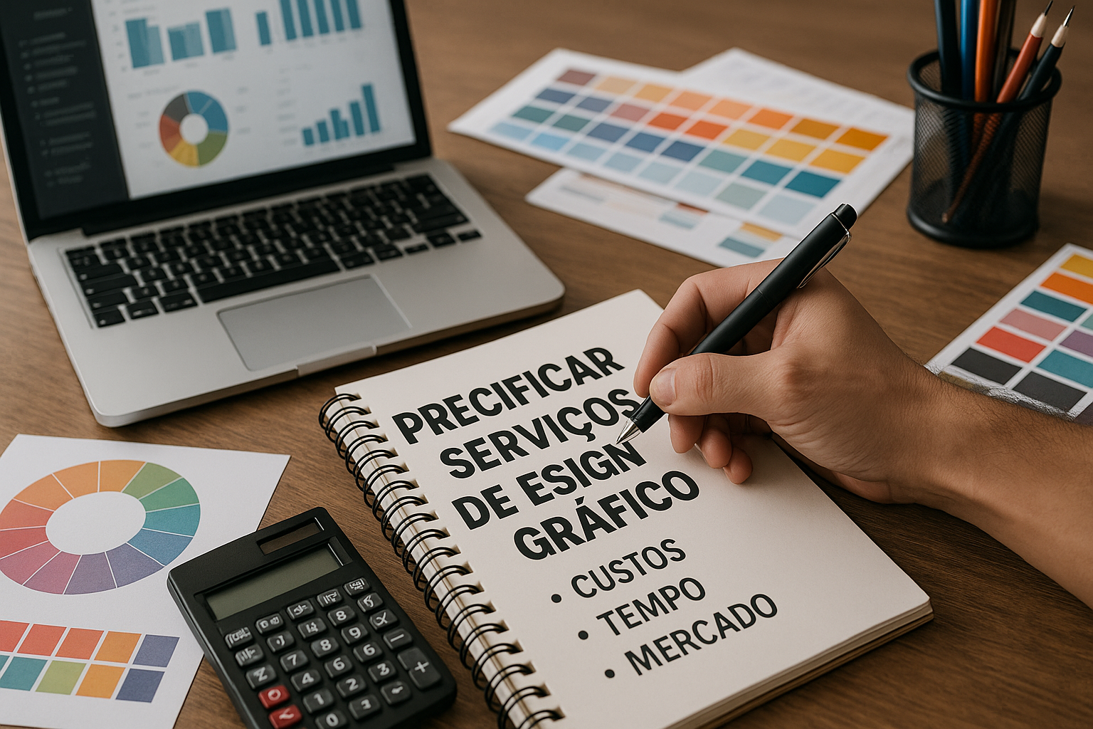 Um dos maiores desafios para quem trabalha com design gráfico é saber quanto cobrar pelos seus serviços. Cobrar pouco demais pode desvalorizar seu trabalho e te levar à exaustão. Cobrar demais, sem justificativa, pode afastar clientes. Neste artigo, você vai aprender como precificar serviços de design gráfico de forma estratégica, profissional e sem medo de errar. Por que é tão difícil precificar no design? Diferente de produtos físicos, o design é um serviço intangível e personalizado. O tempo gasto, a criatividade, a experiência e até o valor percebido variam de projeto para projeto. Além disso, muitos iniciantes cometem erros como: Copiar preços de concorrentes sem contexto Cobrar “por arte” sem entender o escopo Trabalhar com base no achismo ou no que o cliente quer pagar Fatores que devem ser considerados na precificação 1. Seu custo operacional Antes de qualquer coisa, entenda quanto custa para você trabalhar. Isso inclui: Internet Equipamentos…