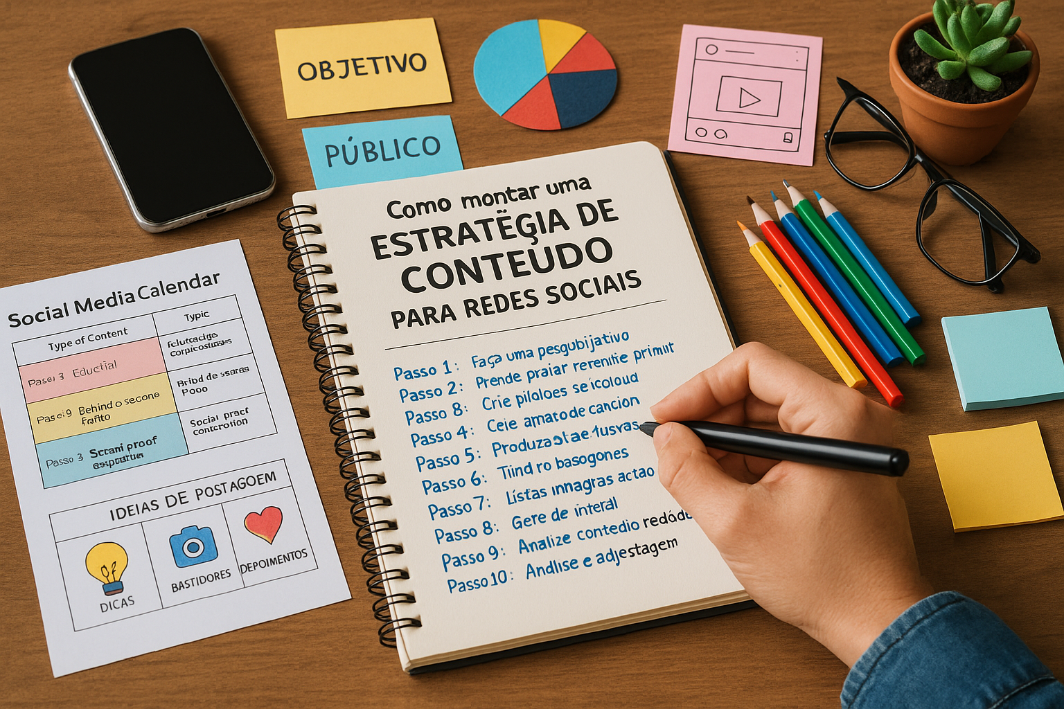 Não basta apenas postar por postar. Para que suas redes sociais tragam resultados reais — como engajamento, autoridade, leads e vendas — é fundamental ter uma estratégia de conteúdo bem estruturada. Neste artigo, você vai aprender como montar uma estratégia de conteúdo eficiente, mesmo que esteja começando do zero, e atrair o público certo para o seu negócio ou marca pessoal. O que é uma estratégia de conteúdo? É o plano que define o que, quando, para quem e com qual objetivo você vai publicar nas redes sociais. Uma estratégia eficiente: Gera valor para o público Cria conexão e confiança Posiciona sua marca Nutre o interesse do seguidor Conduz o usuário até a conversão Sem planejamento, o conteúdo se torna aleatório, repetitivo ou raso. Passo 1: Defina seu objetivo principal Você precisa saber qual é o propósito da sua presença nas redes sociais. Exemplos: Vender produtos físicos Prestar serviços digitais…