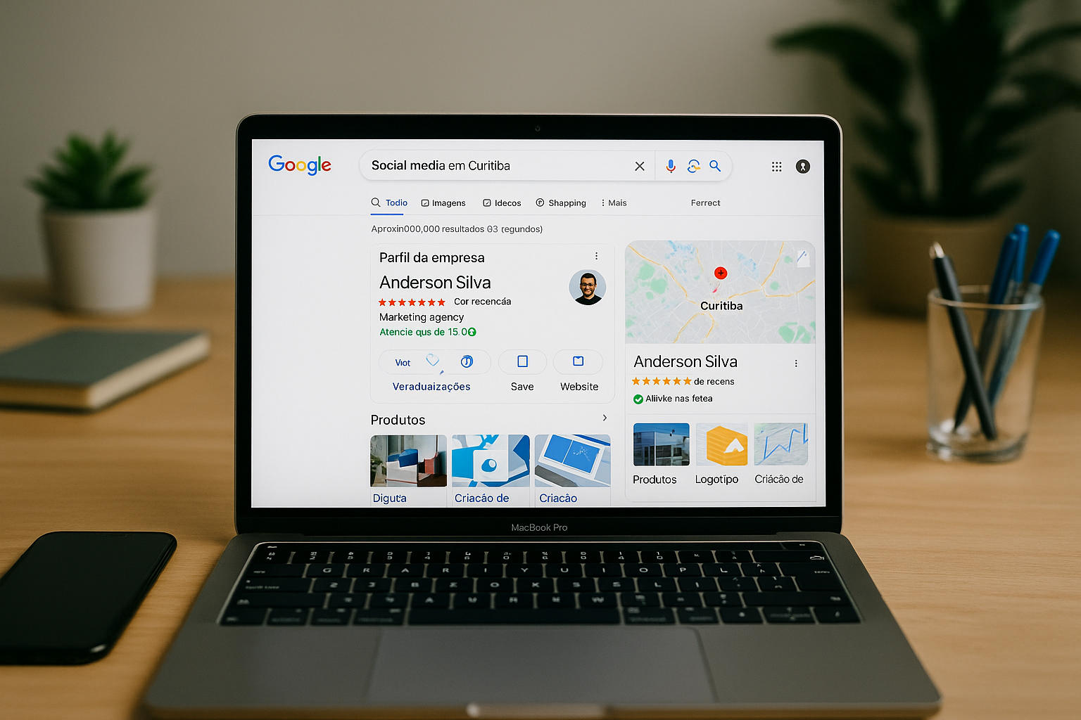 Se você presta serviços para sua cidade ou região — como design gráfico, criação de sites, social media ou consultoria — o Google Meu Negócio (hoje chamado de Perfil da Empresa no Google) pode ser uma das ferramentas mais poderosas (e subestimadas) para atrair clientes. Neste artigo, você vai aprender como usar o Google Meu Negócio para atrair clientes locais todos os dias, mesmo sem investir em anúncios. O que é o Google Meu Negócio? É uma ferramenta gratuita do Google que permite criar um perfil comercial da sua empresa, serviço ou atendimento. Quando alguém pesquisa por: “Designer em São Paulo” “Criação de sites em Recife” “Social media em Curitiba” O Google mostra resultados do Google Maps e do Google Meu Negócio, com endereço, telefone, fotos e avaliações. Por que usar o Google Meu Negócio? Gera tráfego gratuito e local Facilita a confiança do cliente (especialmente com boas avaliações) Exibe…