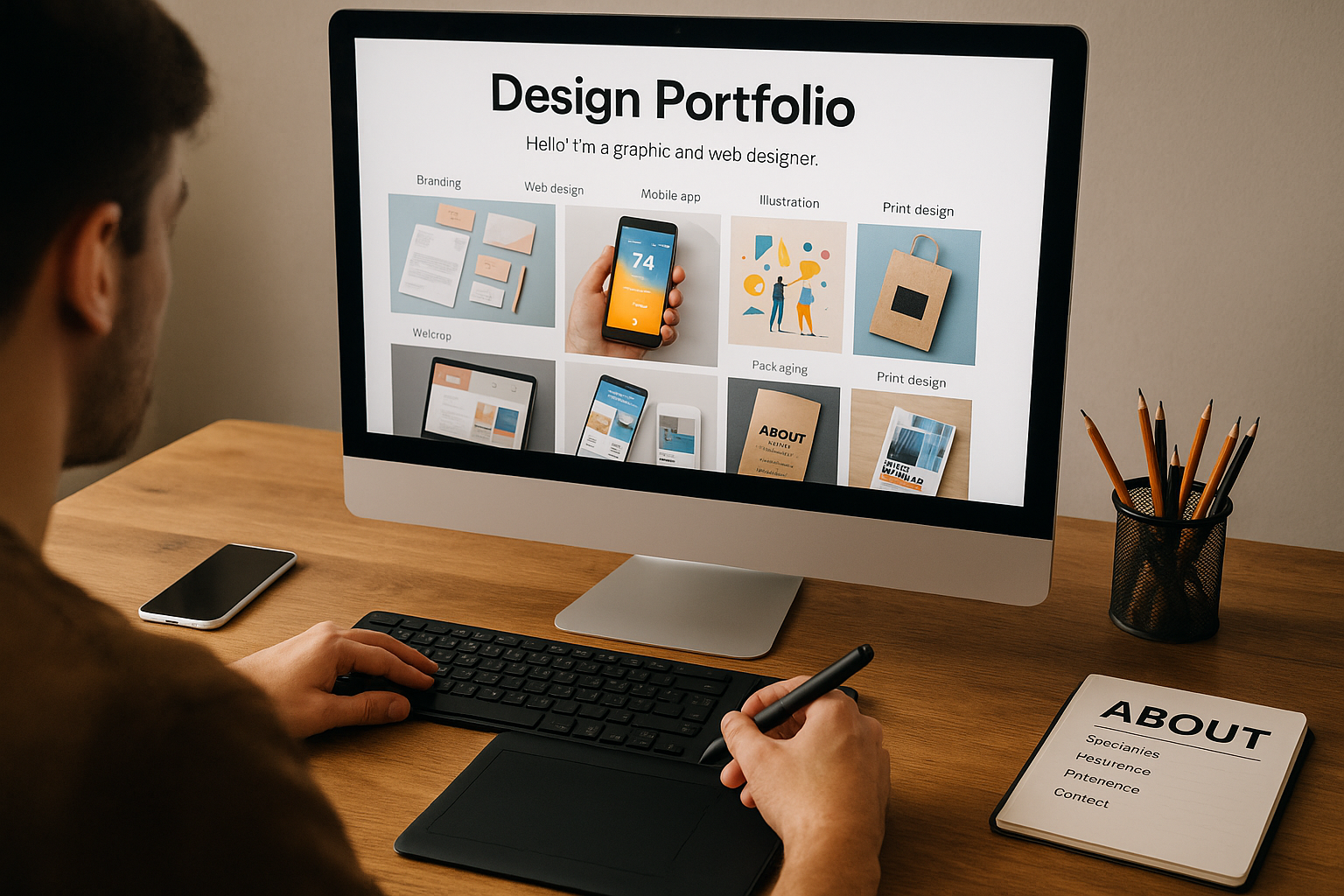 Se você trabalha com design — seja gráfico, digital, web ou de produtos — um portfólio bem montado é seu cartão de visitas mais poderoso. É ele que vai mostrar suas habilidades, seu estilo e sua capacidade de resolver problemas visuais. Neste artigo, você vai aprender como criar um portfólio de design que realmente atrai clientes e se diferencia da concorrência. O que é um portfólio de design? Um portfólio é uma coleção organizada de trabalhos que representa sua experiência, estilo e competências como designer. Ele pode ser apresentado em formato digital (site, PDF, Behance, etc.) ou impresso, dependendo da área de atuação e do tipo de cliente que você quer alcançar. Mais do que um “catálogo bonito”, o portfólio precisa contar uma história: quem é você, que tipo de trabalho faz, quais problemas resolve e por que alguém deve te contratar. Por que ter um bom portfólio é essencial?…